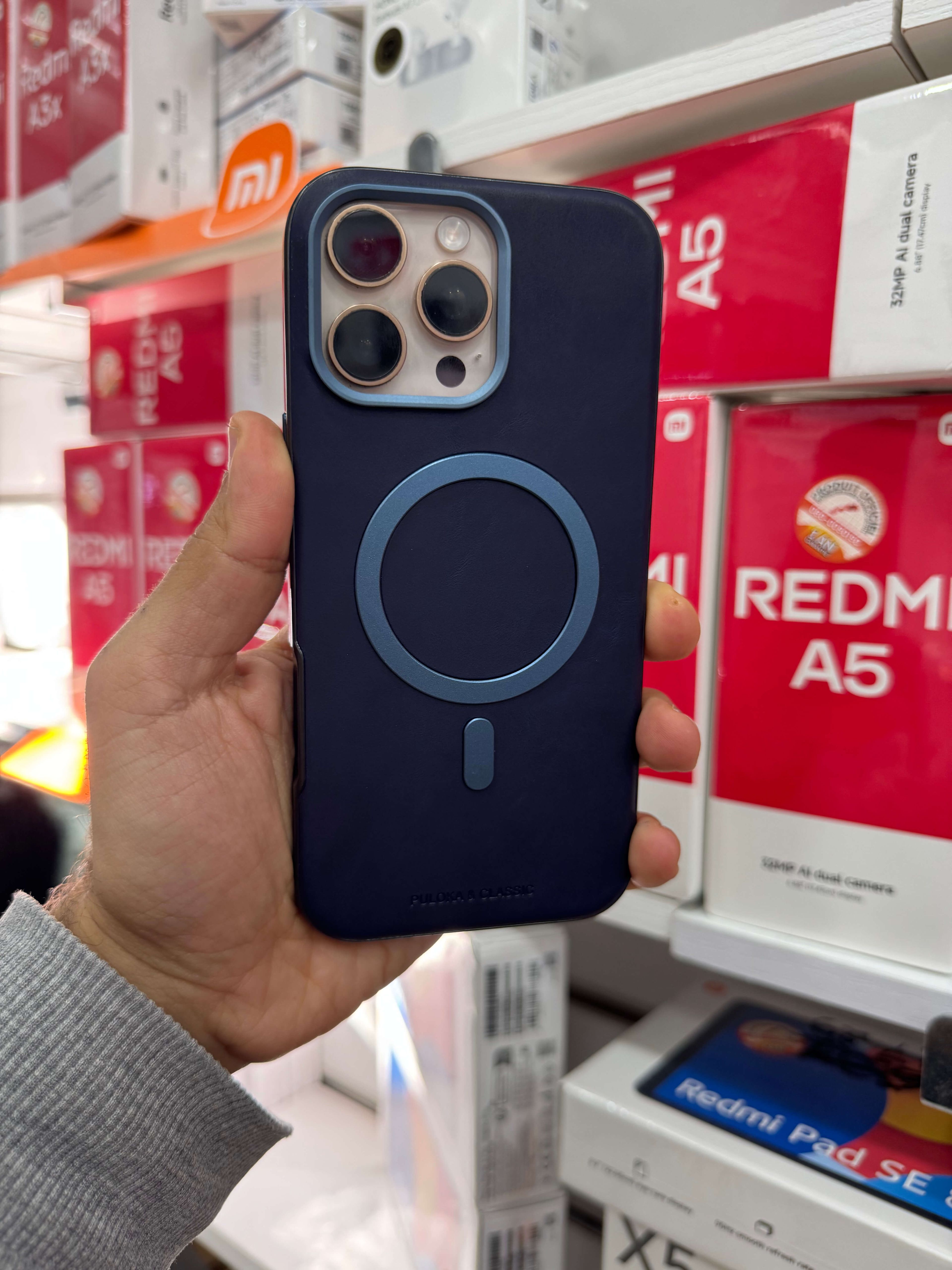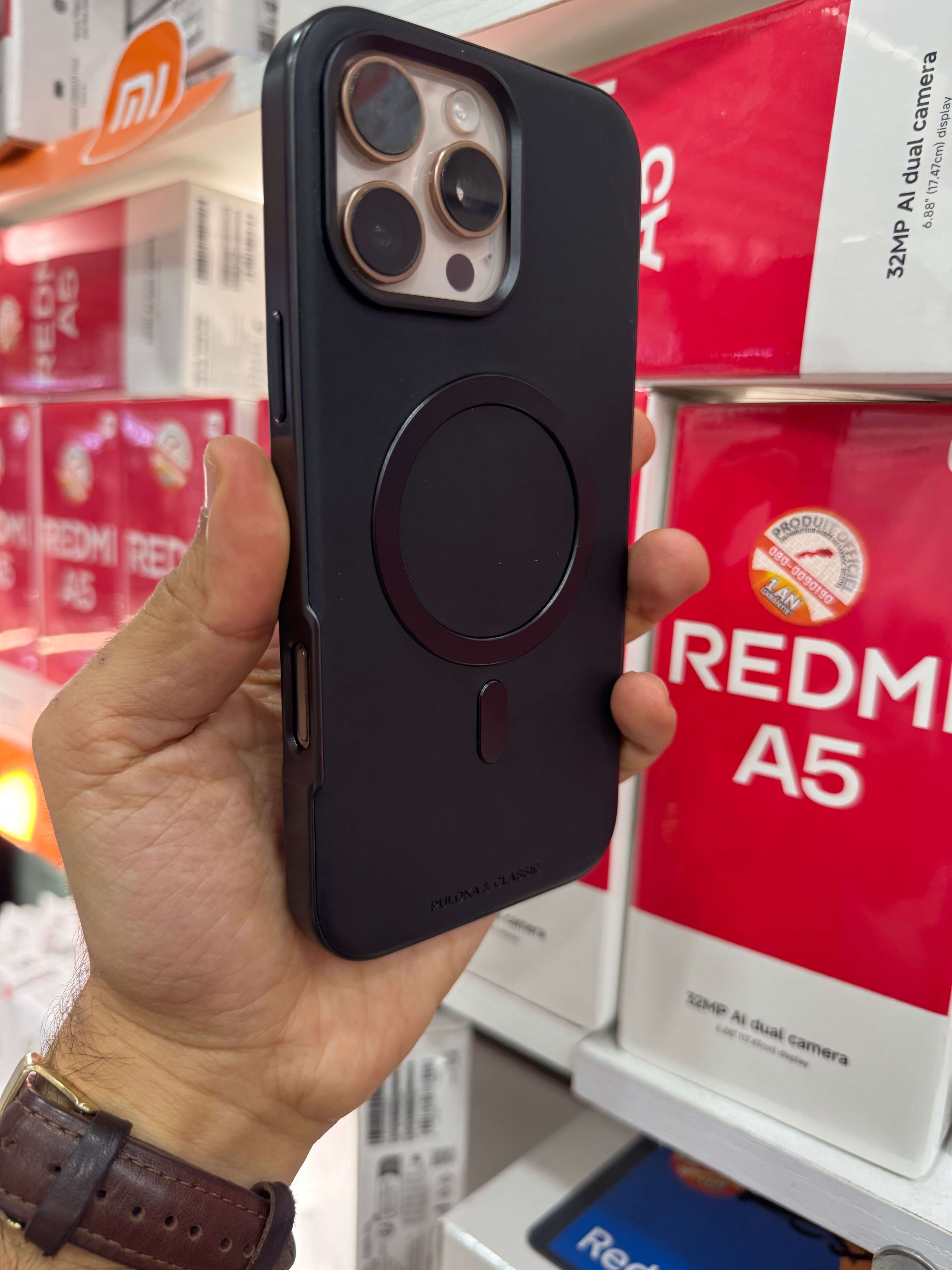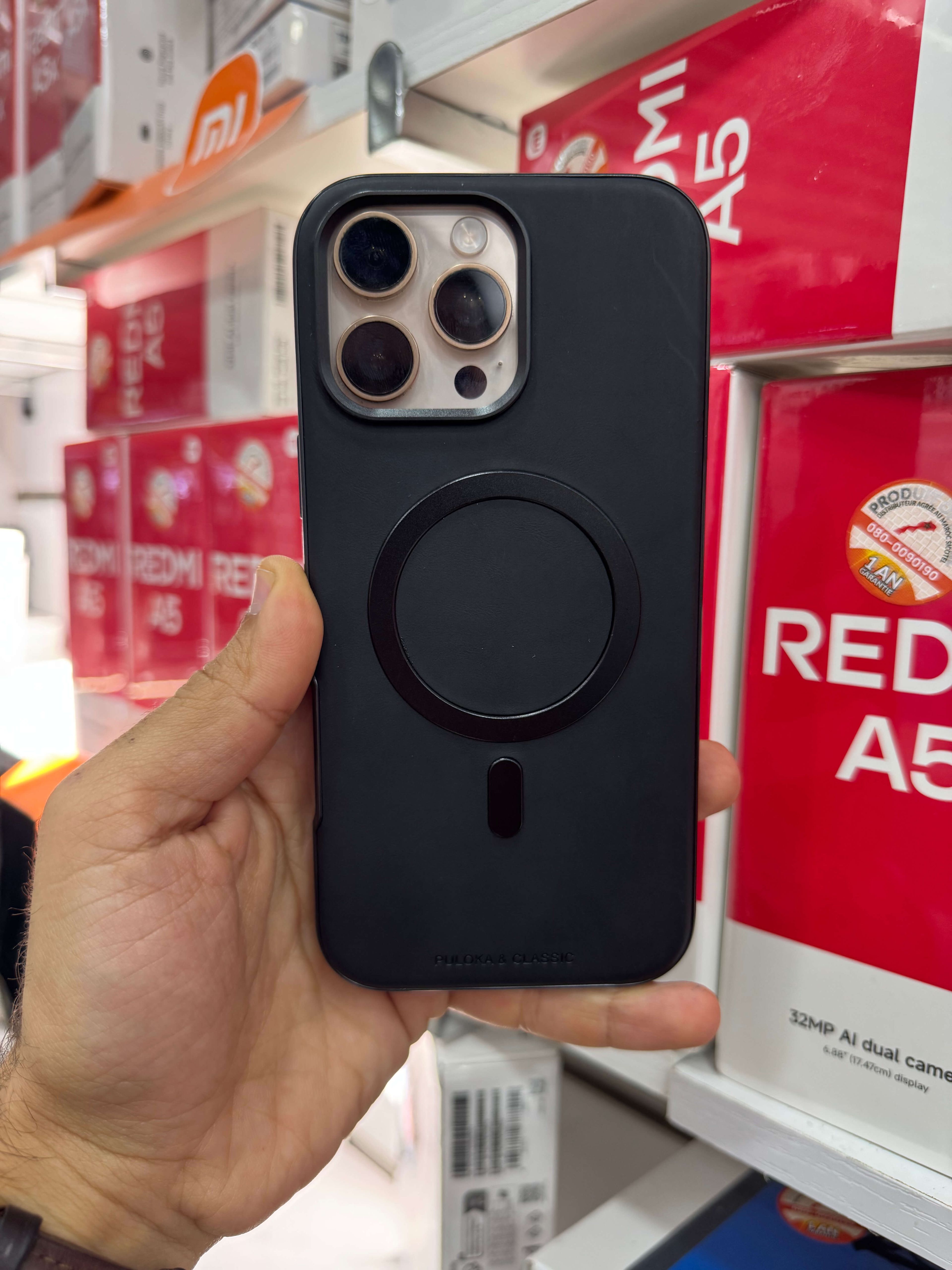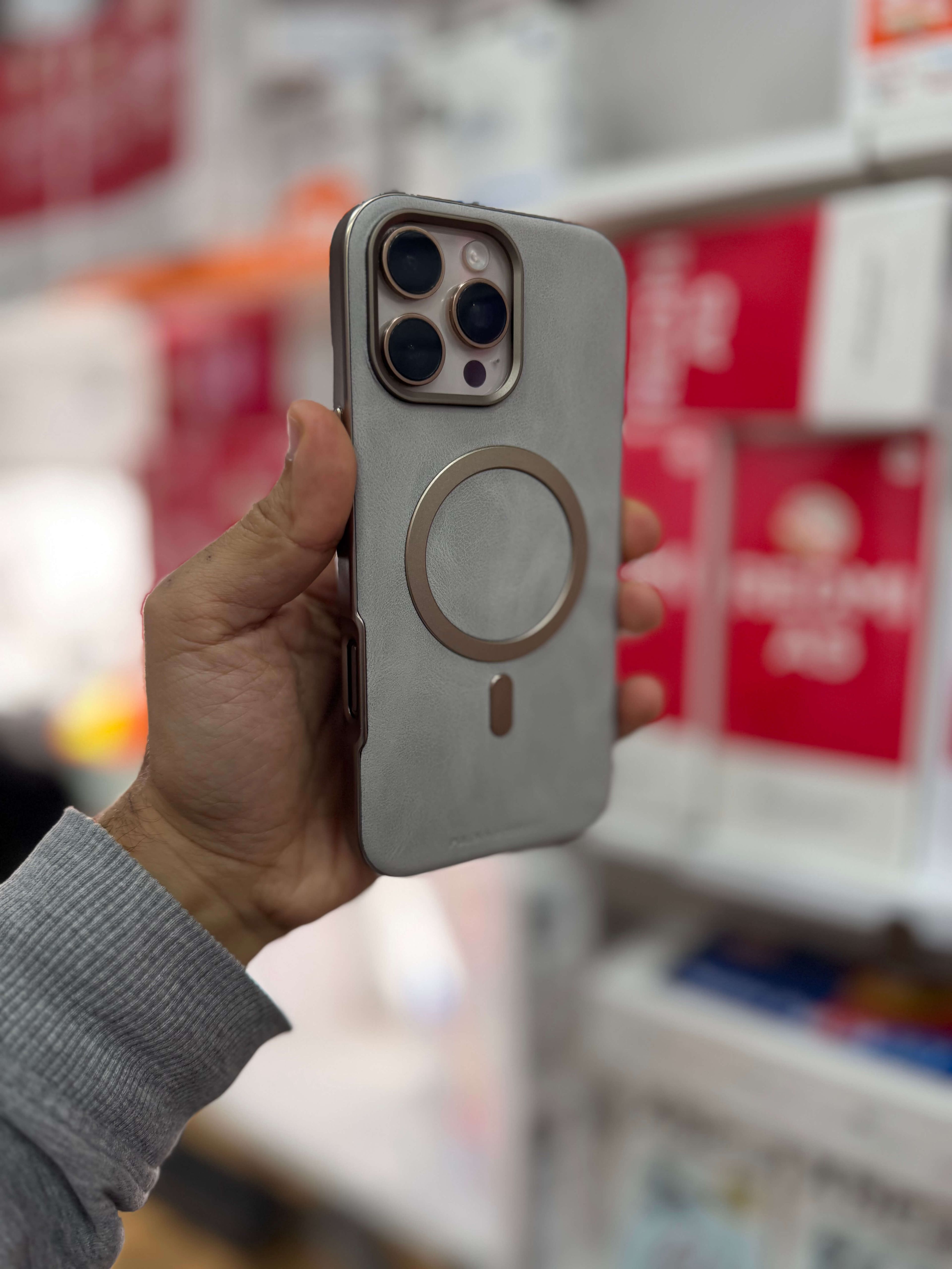 Le cercle MagSafe est discrètement intégré au cœur de la structure, garantissant un alignement magnétique parfait pour vos chargeurs sans fil et accessoires.
